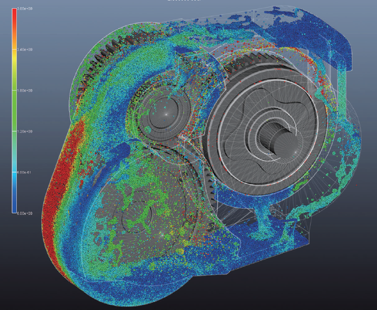 Particleworks 采用最新的数值方法——运动粒子仿真技术MPS (Moving Particle Simulation)。和传统的CFD方法相比,该方法无需繁琐的前处理网格划分过程,节省了60%以上的传统仿真工作量。